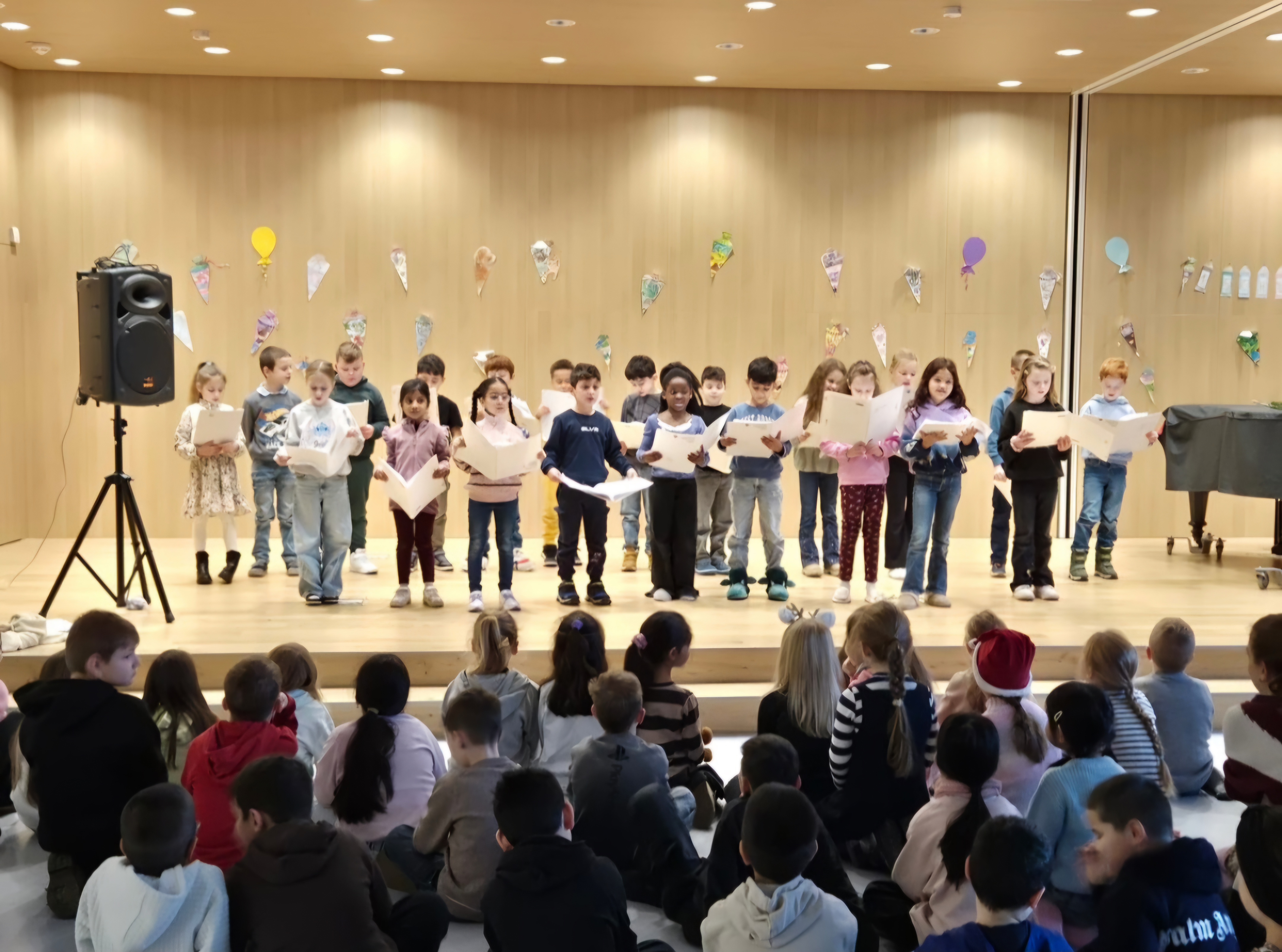 Jeden Montag im Dezember gibt es ein besinnliches Zusammenkommen der Jahrgänge um gemeinsam Weihnachtslieder zu singen.